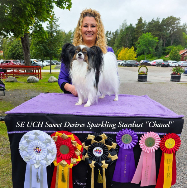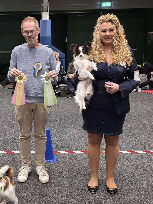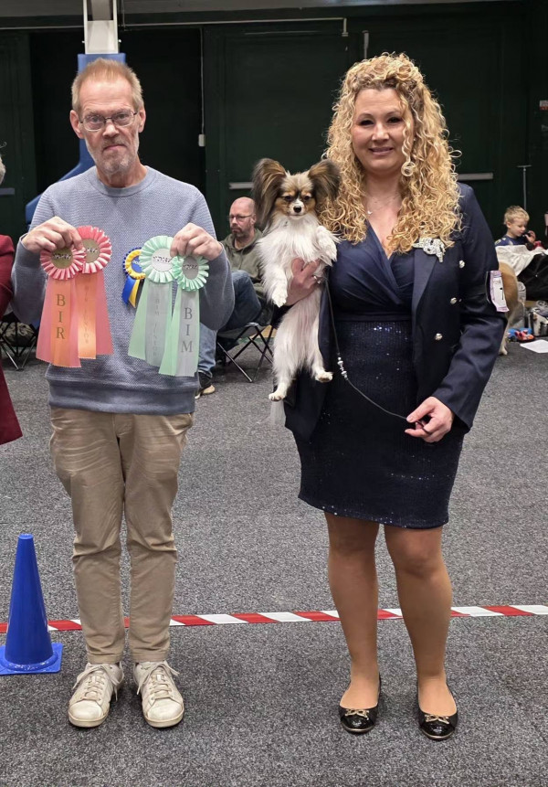 Pappilove's Zparkle "Nelly" Öppenklass: EXCELLENT 1:a plats CK (17 stycken i klassen) och 3:e BÄSTA TIK med CERT och otrolig fin kritik av domaren David Guy (Storbritanien) 88 stycken Papillon anmälda.