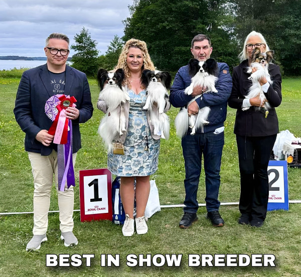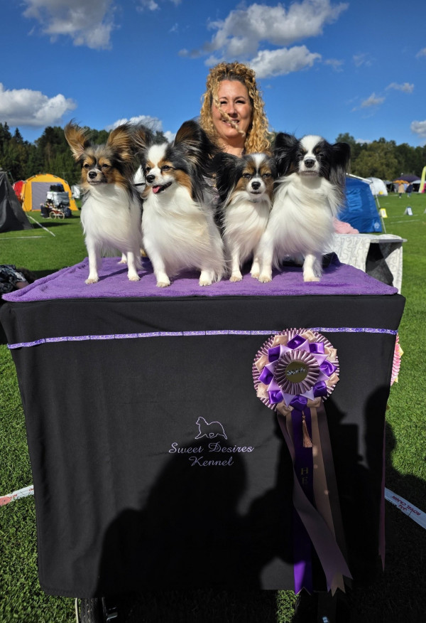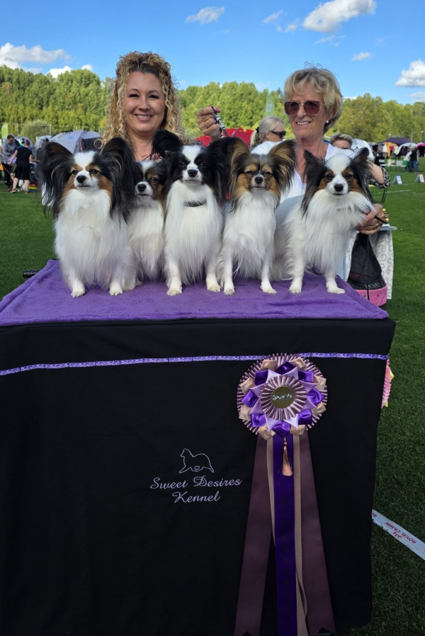 Lindatorps Nice And Sweet Nathalia "Betty" Juniorklass: Excellent, Pappilove's Zparkle "Nelly" Juniorklass: Excellent, Kellika's Mighty Mythos Öppenklass: VG, SE UCH Lindatorps Tiburtius "Toddy" Championklass: VG